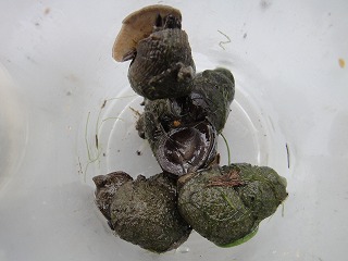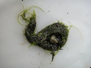 【左】オオタニシ 【中】 【右】アオミドロ