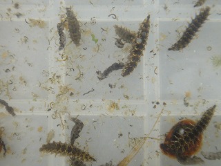 【左】ヘイケボタル幼虫 小分け      【右】ヘイケボタル幼虫 放流