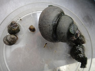 カワニナ、ヒメタニシ、オオタニシ、アマガエル、カナヘビ