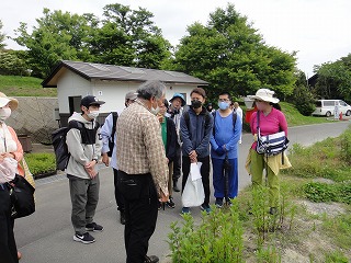 カキツバタ(開花)、アサザ(開花)、イグサ(開花)、ヒメガマ、シロツメクサ(開花)、ヒメジョオンン(開花)、ノゲシ、アメリカフウロウ