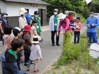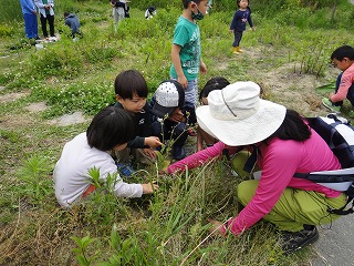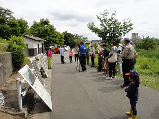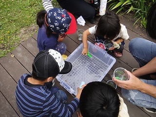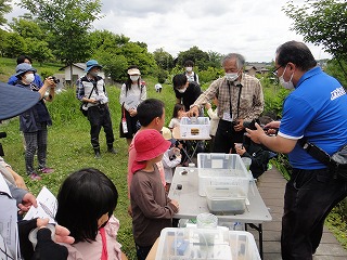 長谷川明子講師が企画されたイベント構成の下で全体進行。芝生広場で応募参加者を9時から受付け、7家族編成。9時40分からアンバサダー川崎郁美さんのアナウンスで開会。主催者挨拶、スタッフ紹介の後、長谷川講師による「生きもの体操」を実施(約15分)。10時00分、参加家族をポット苗づくり会場に移動させ講師陣のガイドの下で、フジバカマの差し芽づくりを実施した。次いでヘイケボタル幼虫の観察と放流会場に移り、知多自然観察会講師のガイドで幼虫放流を実施した。再びポット苗づくり会場に戻り差し目をポットに植えた。ポット苗は水やりの後、根が生えるまで育苗され、秋のイベントで植栽される。11時30分にイベントを終了し、振り返りの後解散した。