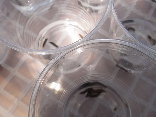 【左】ヘイケボタル幼虫 【中】 【右】幼虫放流