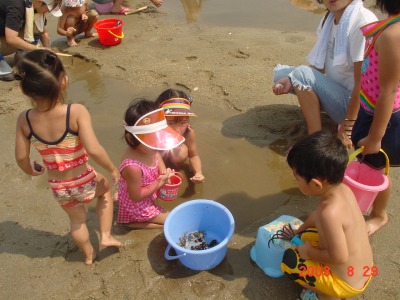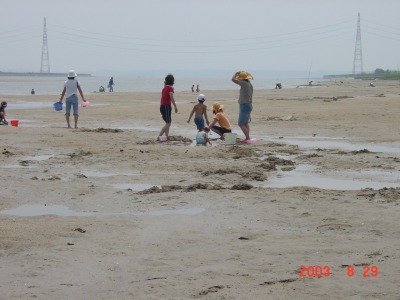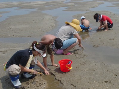 【右】家族で来て、子ども達と砂遊びやシジミ採りをしています。