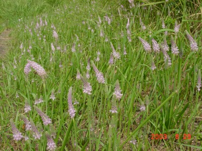 【右】矢作川の堤防に咲いているツルボです。毎年、同じ時期(8月中?)に草刈をするとよく育ちます。