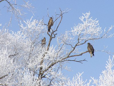 【右】トビが澄んだ青空でくるりと絵を画いて飛びました。