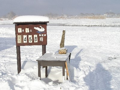 【右】南安曇郡豊科町の犀川ダム湖です。台風でダムが決壊し、カモばかりでした。