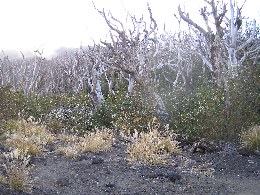 強風のため船が欠航し一日遅れで三宅島に着くことができました。三宅島ガイドをNACS−Jを通じお願いしましたたら現地で緑化事業に取り組んでいる成田さんを紹介していただきました。そのお陰で随分助かりました。三宅島の人たちが帰島して未だ一年経過していません。また、2000年の噴火の傷跡が生々しく残り、二酸化硫黄が噴出し各所に高濃度地区や危険区域が設けられています。そんな状態の中、島の様子に明るい成田さんに案内していただき助かりました。