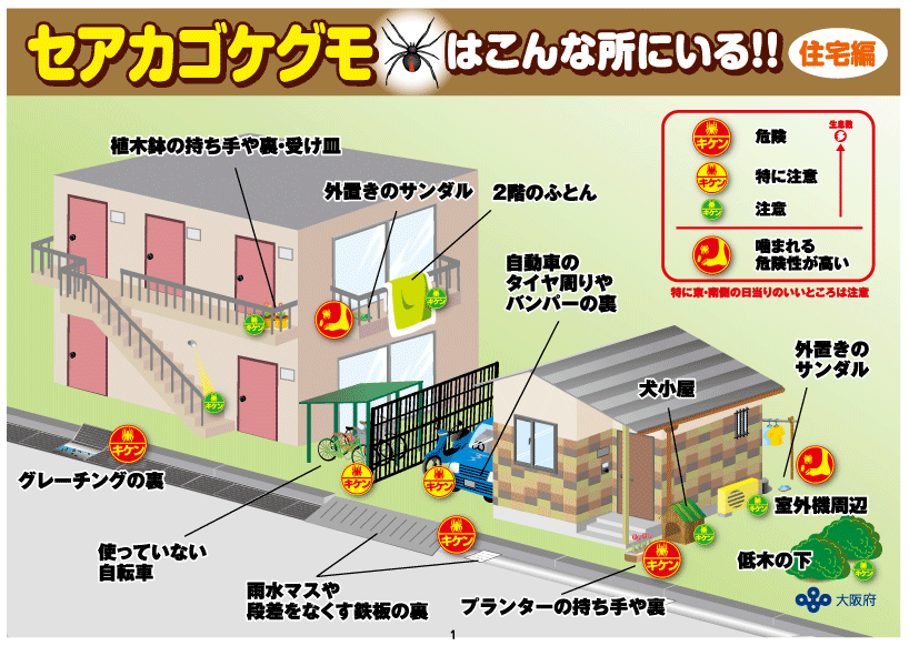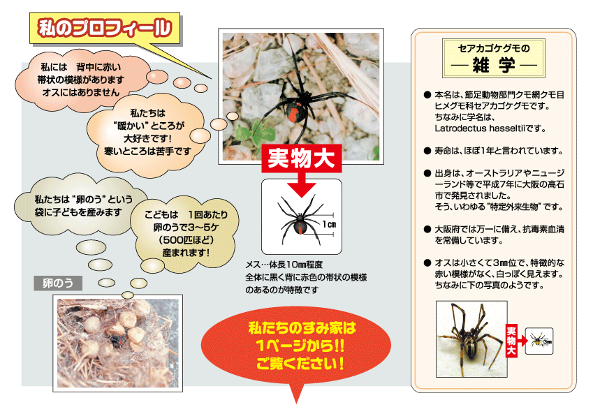 ※以下…大阪府庁のページ(「セアカゴケグモ啓発用冊子」)より