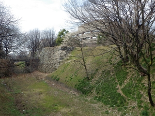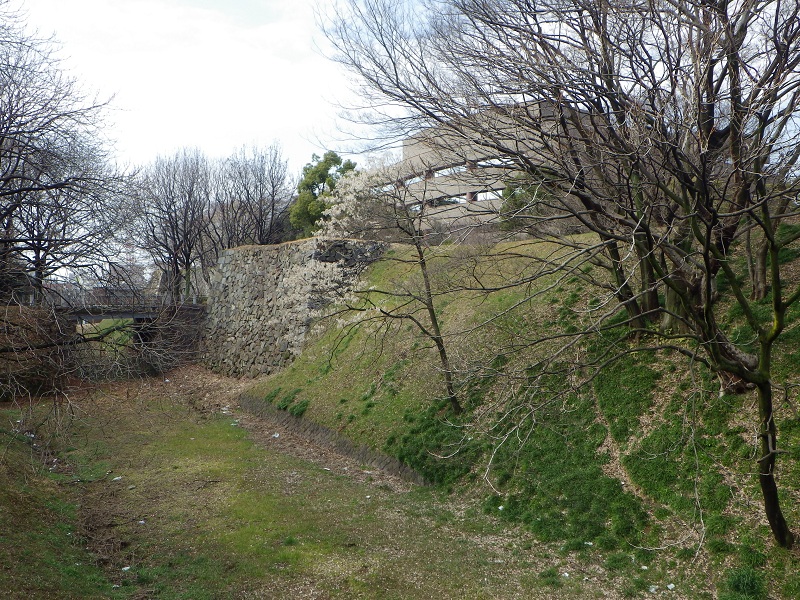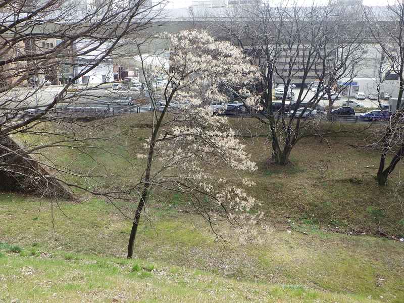 【上の2枚】お堀にも同じ木が1本ある(いずれも写真中央…同一の木)。これも満開?でした