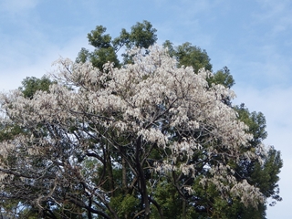 【上の3枚】愛知県図書館前の“白い花?”が満開の木。すべて同一の木