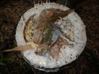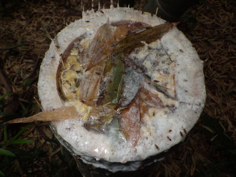 ※この樹液は明らかに発酵していた。しかもアルコール発酵と思われる。甘いような酸っぱいような香りが近づくとはっきり分かる