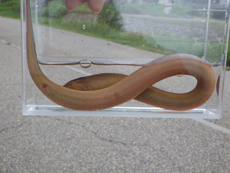 そこで、ウナギと違う「うなぎもどき…」が獲れた。タウナギか?と思ったが、今まで一度も見たことがないので、『ウナギみたいだけどウナギじゃないよ…』とういう説明で終わった。当然、『おじさん(私)も初めて見たよ…』とも言いました。