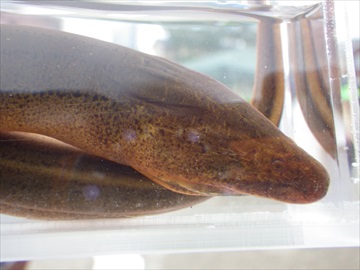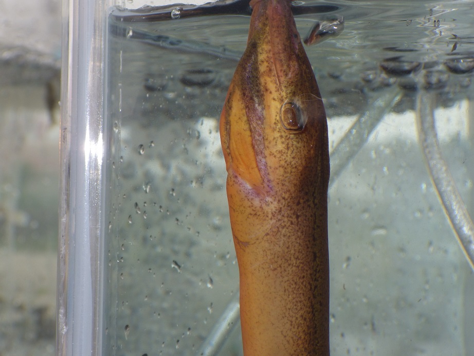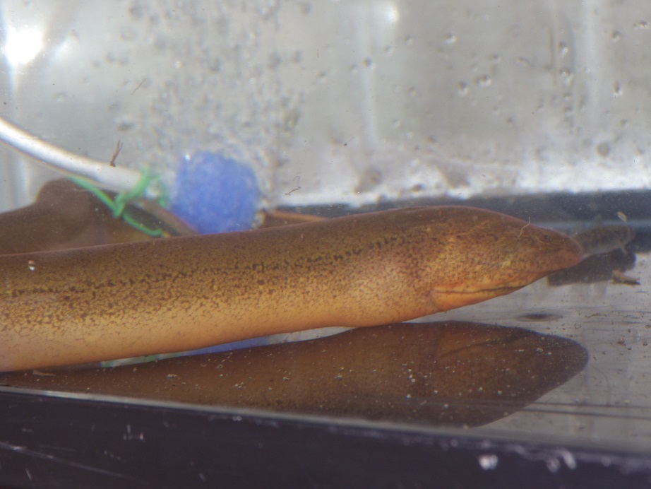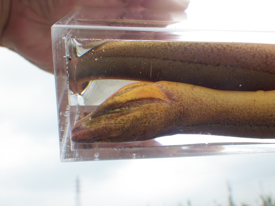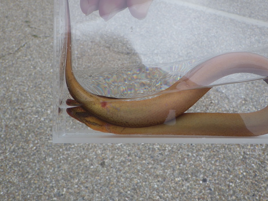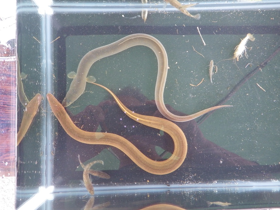 【上の2枚】ウナギとタウナギ ※ ウナギもつかまえたので一緒に