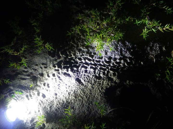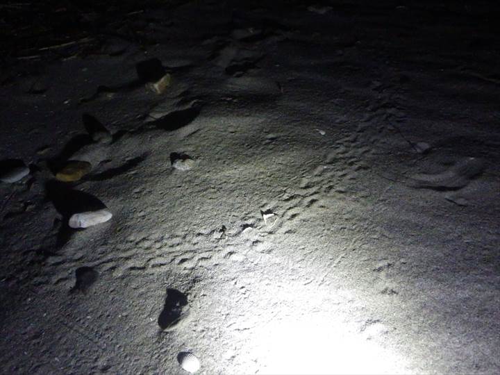 【1】夜、 した子ガメがゾロゾロはい出てくると期待して海岸に行ったときの写真…↓