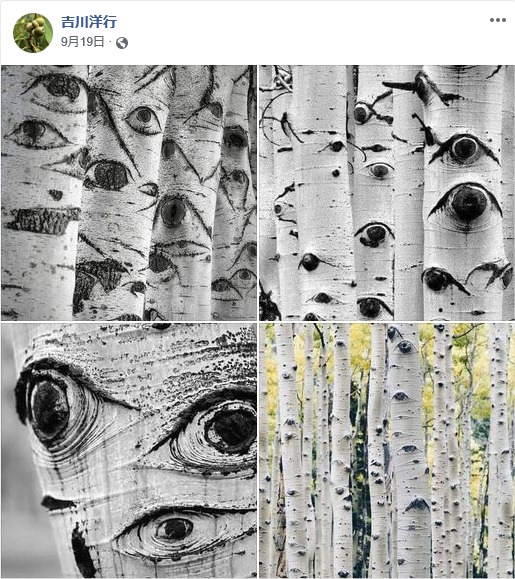 以下に、●吉川洋行氏が1ヶ月前の 9/19 にアップしたFB。●次にそれに対する私のコメント。●その次に日本のシラカバの樹皮写真。●最下段に私が "あっけにとられた" 写真を掲載しました。