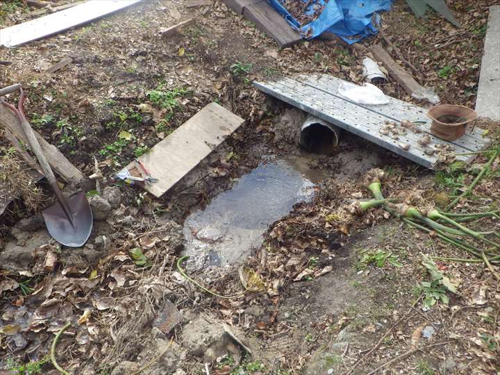 【左】掘った穴にには、すぐ、水が溜まるので、ここで、相当な土を洗い流す…→