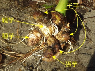 <私の"里芋" の認識> ・里芋=子芋と、つい、この前まで思っていた。 ・親芋、子芋、孫芋…があるとは知らなかった。 ・種芋の上に親芋が出来る…とは知らなかった。 |