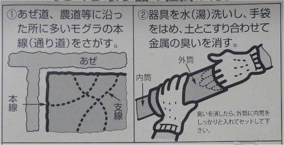 【右】早速、捕獲器にその場の土をこすり付ける。もちろん、作業は、すべて、手袋をして行う