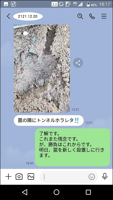 正直言って、この情報は時期尚早で恐縮です。と言うのは、本日(2021.12.14)、罠(ワナ) を仕掛けたばかりで、実物が獲れていませんし、この先も、獲れるかどうか、むしろ、獲れないであろうと思われるからです。