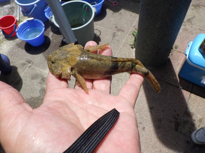 本日(2022.6.28)昼前、15cm ぐらいの "アユカケ" を半田市内の川でをつかまえました。