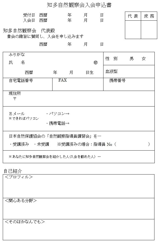 ・入会を希望される方は入会申込書に記入の上、代表または庶務にご提出下さい。